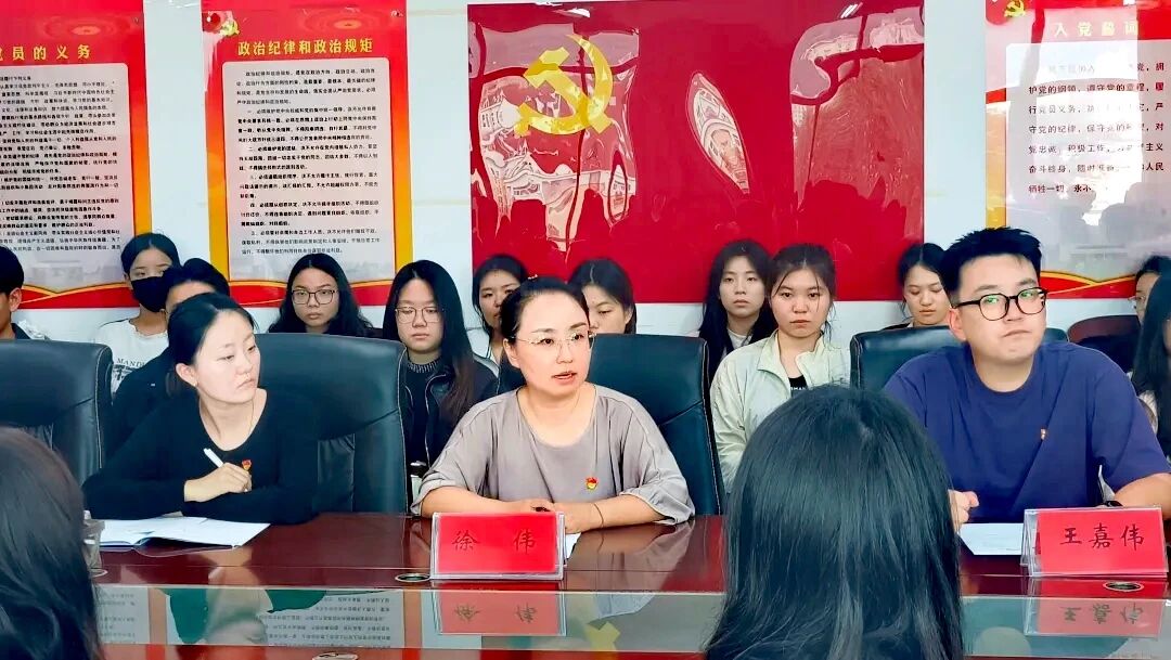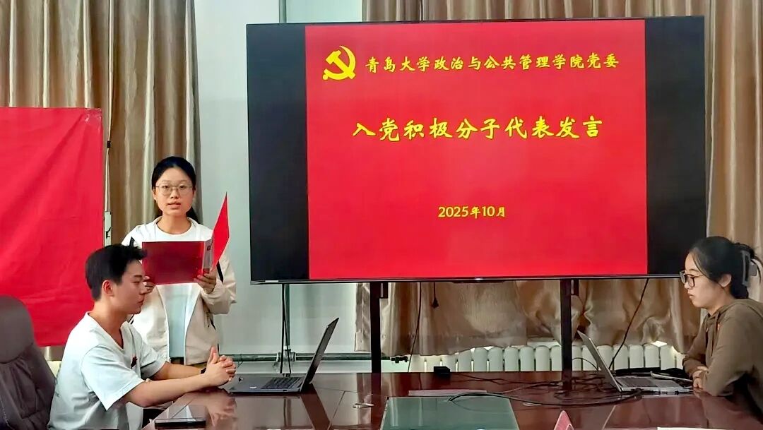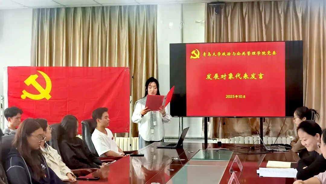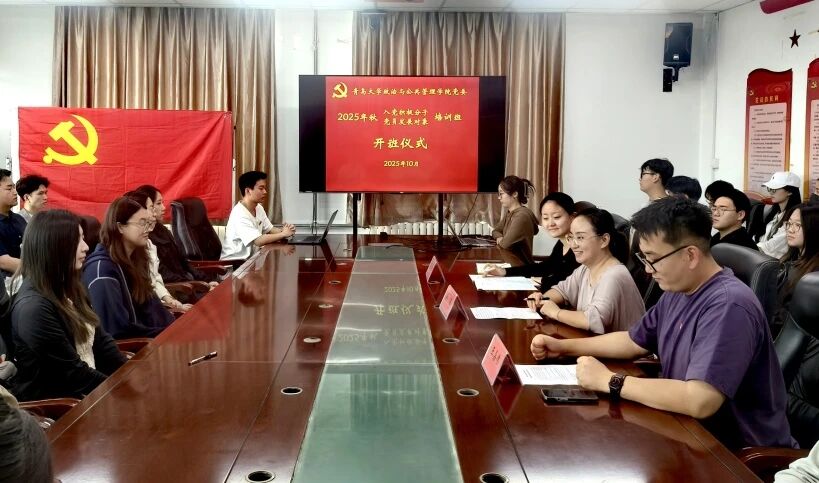 为切实加强对入党积极分子和党员发展对象的培养教育,提高党员发展质量,2025年10月9日下午,青岛大学政治与公共管理学院在二号实验楼214室举行了“峥嵘岁月铸丰碑,同心筑梦启新程”专题党课暨2025年秋季学期入党积极分子、党员发展对象培训班开班仪式。此次党课由学院党委副书记徐伟讲授,辅导员老师商玉坤主持,辅导员老师王嘉伟、学生党支部全体党员以及2025年秋季学期入党积极分子、党员发展对象参加。