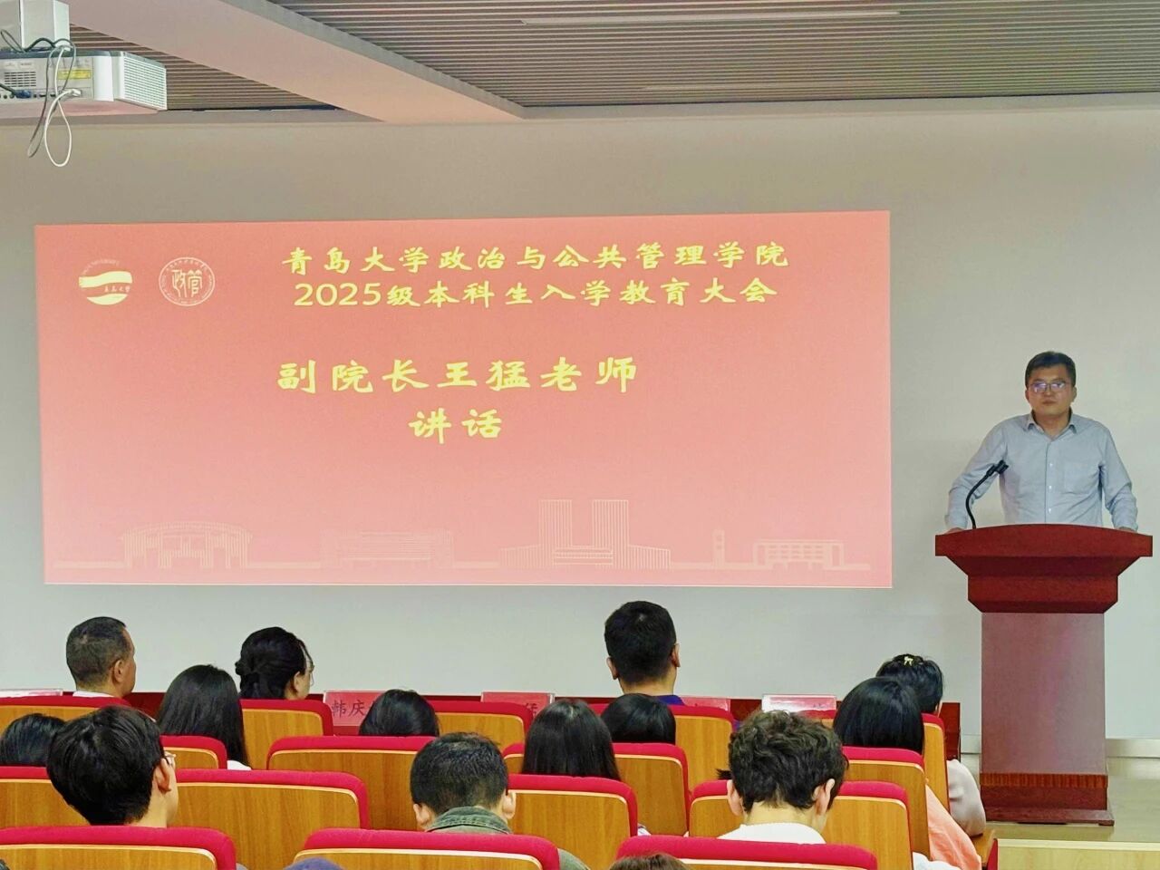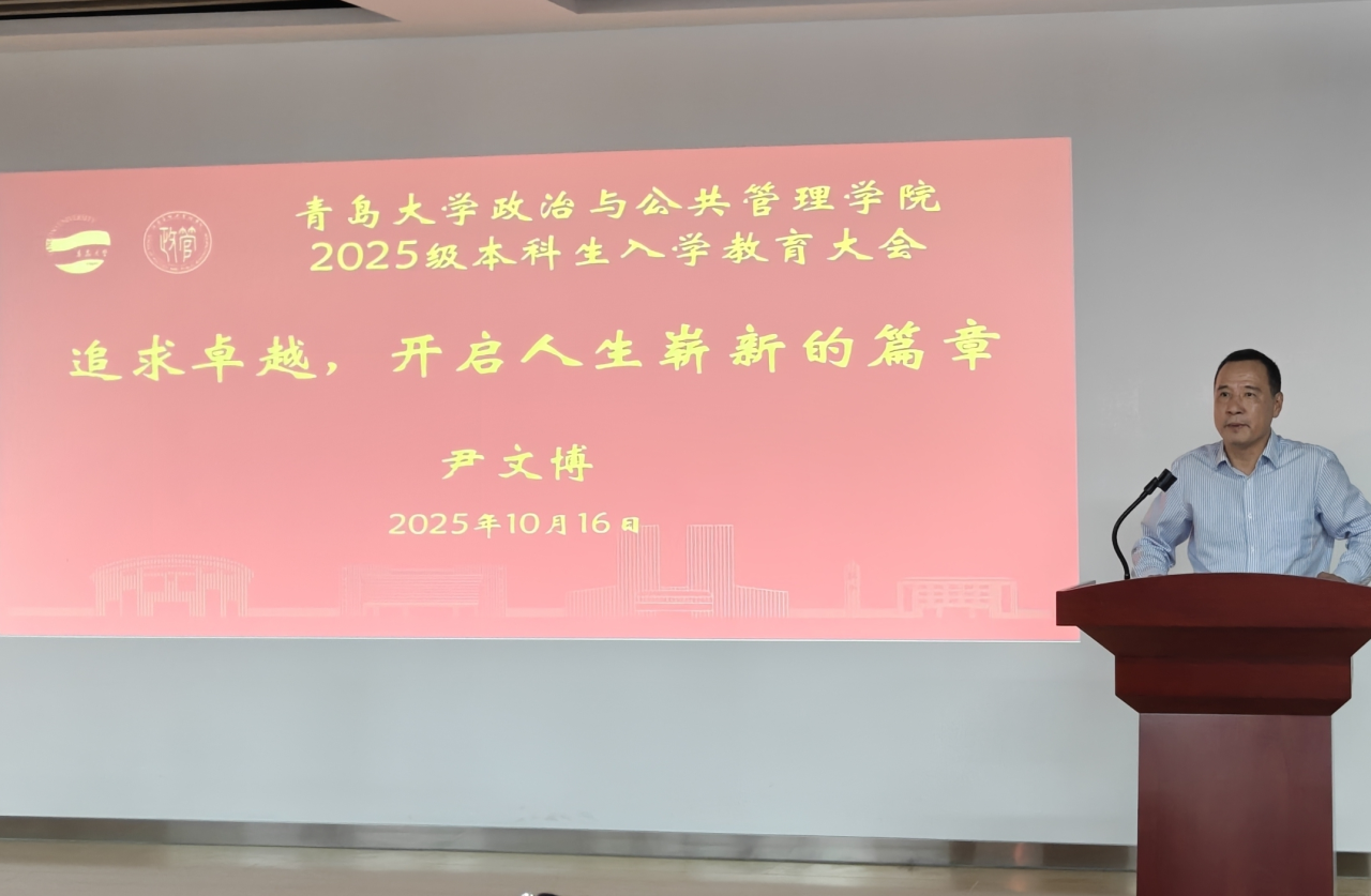 为帮助2025级本科生熟悉学院概况,明确未来学习与发展方向,政治与公共管理学院于10月16日下午在图文中心三楼报告厅召开2025级本科生入学教育大会。学院党委书记尹文博、党委副书记徐伟、副院长韩庆娜、副院长王猛、行政管理专业老师戴祥玉、李志云、国际政治专业老师赵一衡、辅导员老师商玉坤以及2025级全体本科生参加本次会议,会议由徐伟主持。