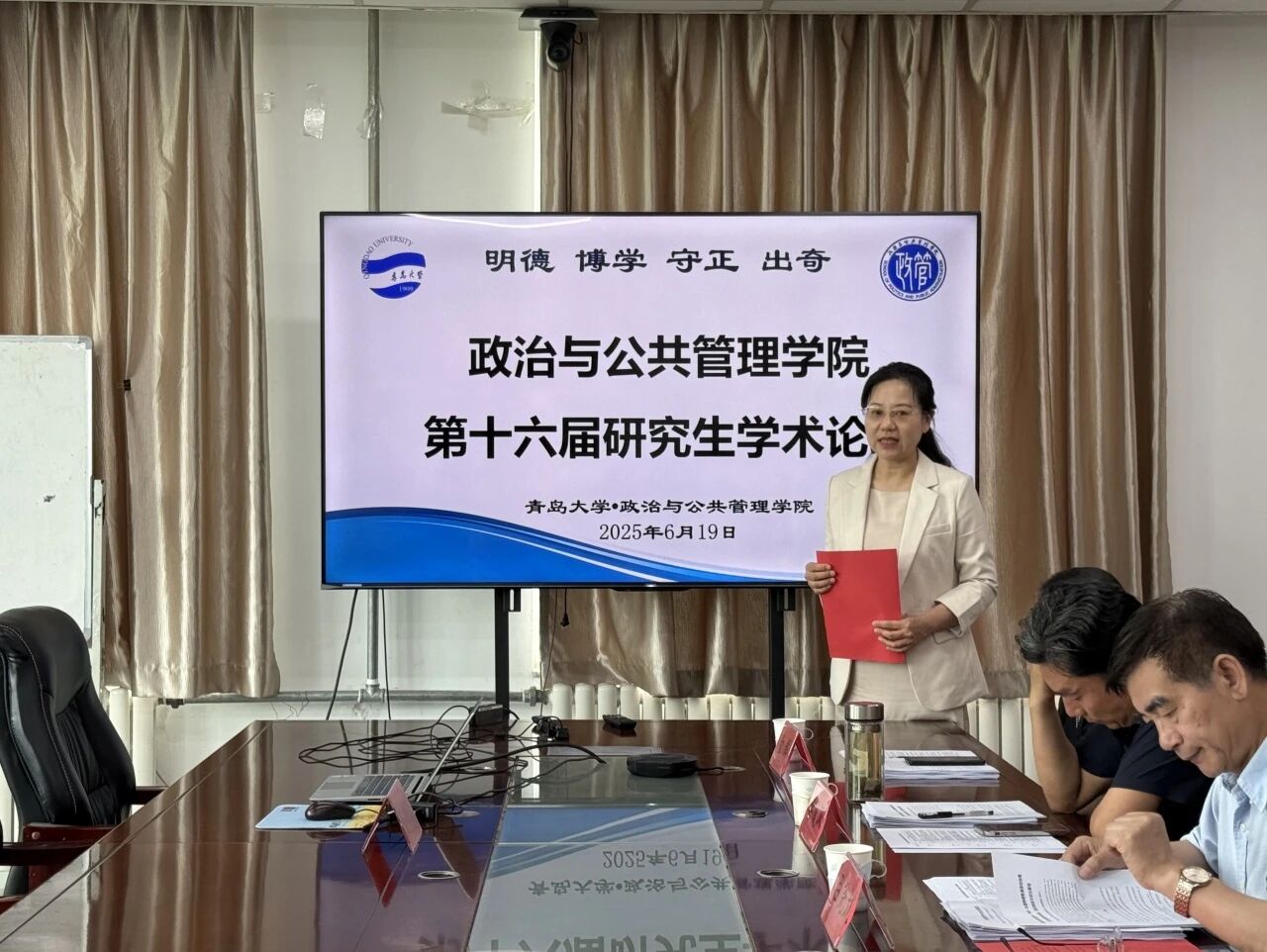 6月19日下午,政治与公共管理学院第十六届研究生学术论坛在金家岭校区二号实验楼214会议室举行。本届论坛以“中国式现代化的多维逻辑与实践路径”为主题,从多学科视角探究社会主义现代化新发展阶段的理论与实践问题。副院长韩庆娜出席论坛并致辞,吕尧太、李凌汉、高鹏、金辉、赵一衡五位教师担任答辩评委。经论坛专家评审委员会初选共计10篇论文入围,论文作者与部分研究生、本科生参加论坛。论坛由学院研究生会江小涵主持。