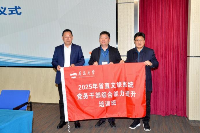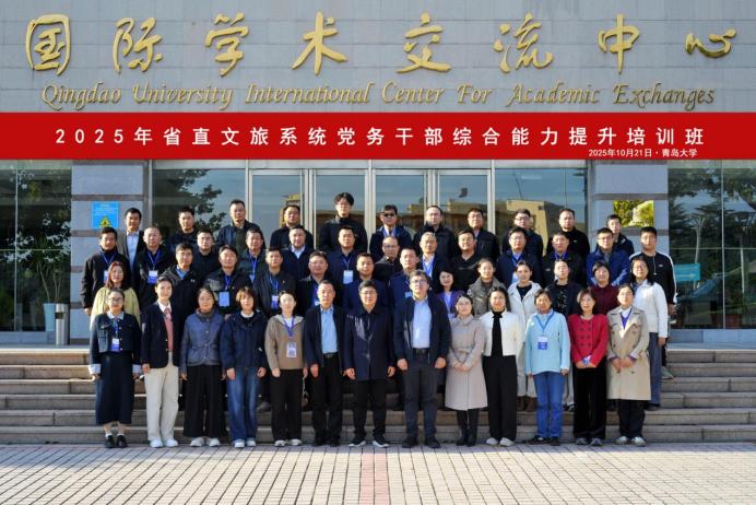 10月21日下午,2025年省直文旅系统党务干部综合能力提升培训班开班仪式在青岛大学会议中心404举行。省文化和旅游厅机关党委专职副书记、一级调研员王衍良,省文化和旅游厅党组成员、副厅长王炳春,青岛大学党委常委、副校长刘恩贤,青岛大学政治与公共管理学院党委书记尹文博、副院长王猛出席开班仪式。仪式由王猛主持,省直文旅系统47名党务干部参加培训。